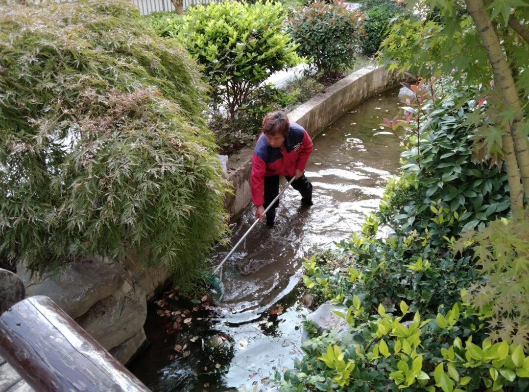 清理景观池落叶