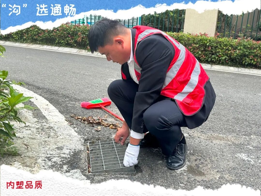 每一次的垃圾捡拾,每一次的俯身清扫,每一次的细心疏通,都是在还原园区的整洁的本貌。