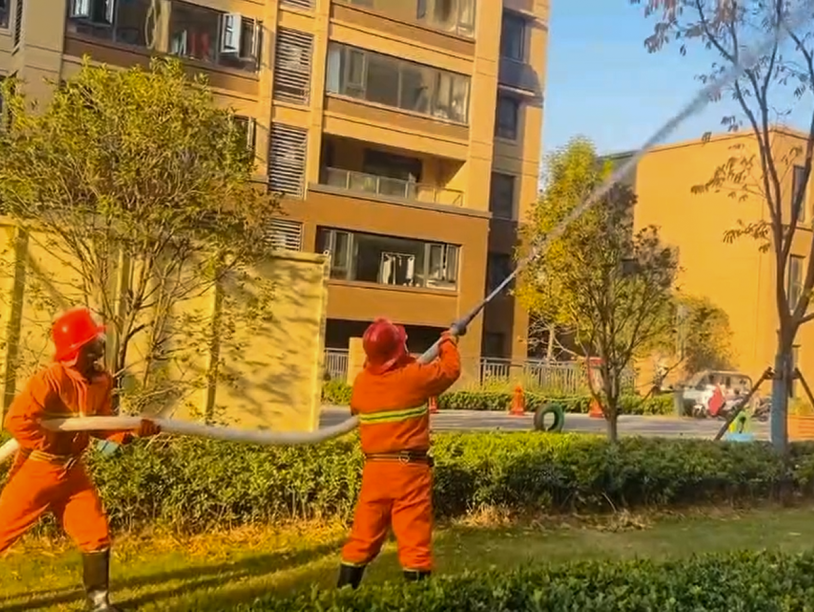 消防演习是确保安全防线的坚实基石,金鹏祥和物业定期开展消防演习,通过融合知识培训与实际操作演练,有效提高人员在紧急情况下的应对与处置能力。