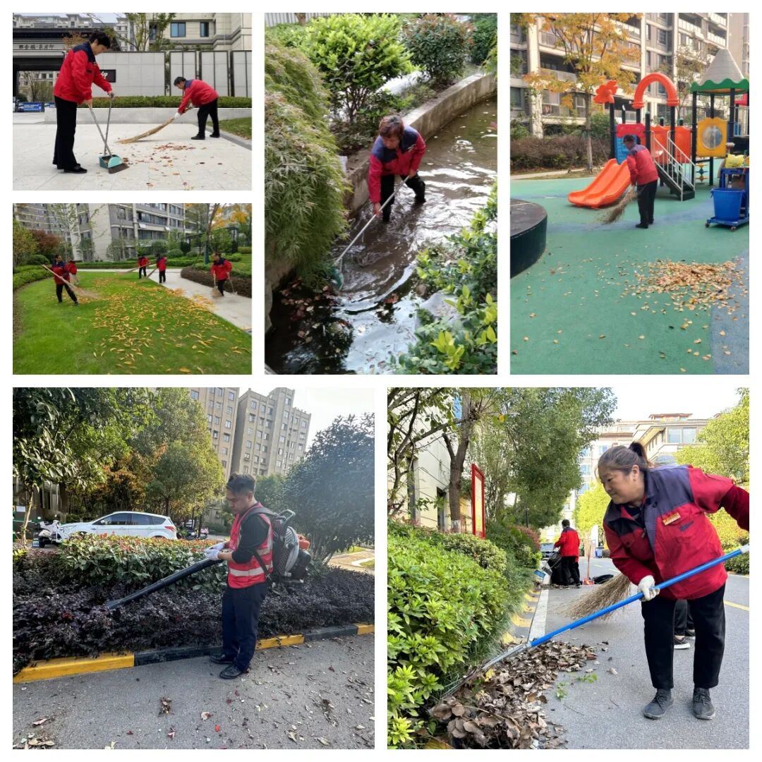 为了确保园区的整洁度,并有效遏制病虫害的扩散以及病菌的传播,金鹏祥和物业人全面展开了落叶清扫工作,覆盖道路和灌木丛的各处。